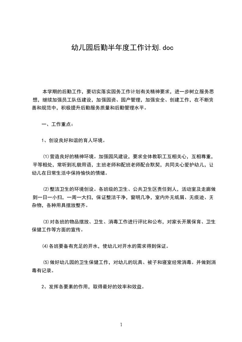 一、事务工作 以勤俭节约作为我们后勤工作的准则,在一些工具的处理上,没有过多损坏的用品准时地修理,使其能够二次用法,同时合理的运用资金,将一些物品选购添加。 在日常工作上检查教学用具、幼儿的玩具以及办公用品是否有缺失,准时地更新资料,做好登记。 做好卫生的检查工作,对 整个幼儿园保持洁净,在幼儿每天上学时都能看到一些干净光明的学校,同时做好幼儿园内一些幼儿常常用法的比如玩具、碗筷等物品的消毒工作,并且记录下来。 做好平安检查工作,时常巡查幼儿园内,观看是否有平安隐患,水电的部分准时地检修,确保不会发生事故。 深化食堂的管理,将每天的事物做到养分健康,卫生平安,让家长对幼儿园的饮食能够放心安心。 上半年的各项活动中主动配合园内的支配,做好万无一失的预备。