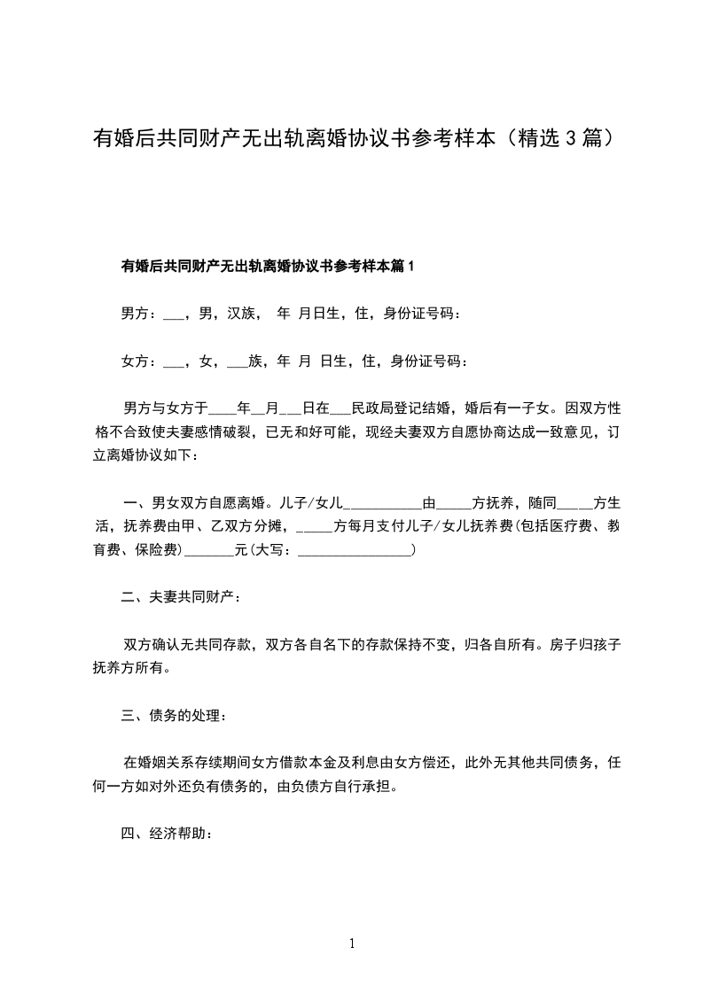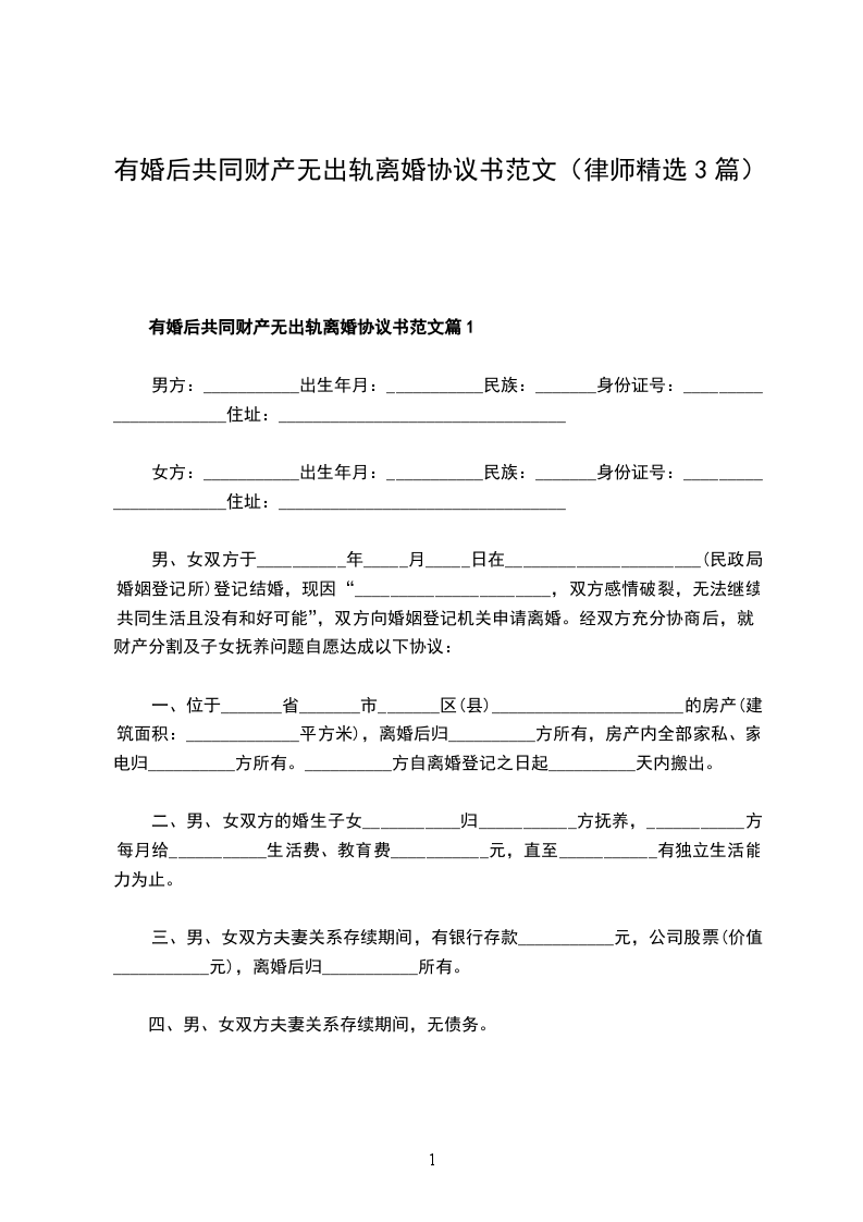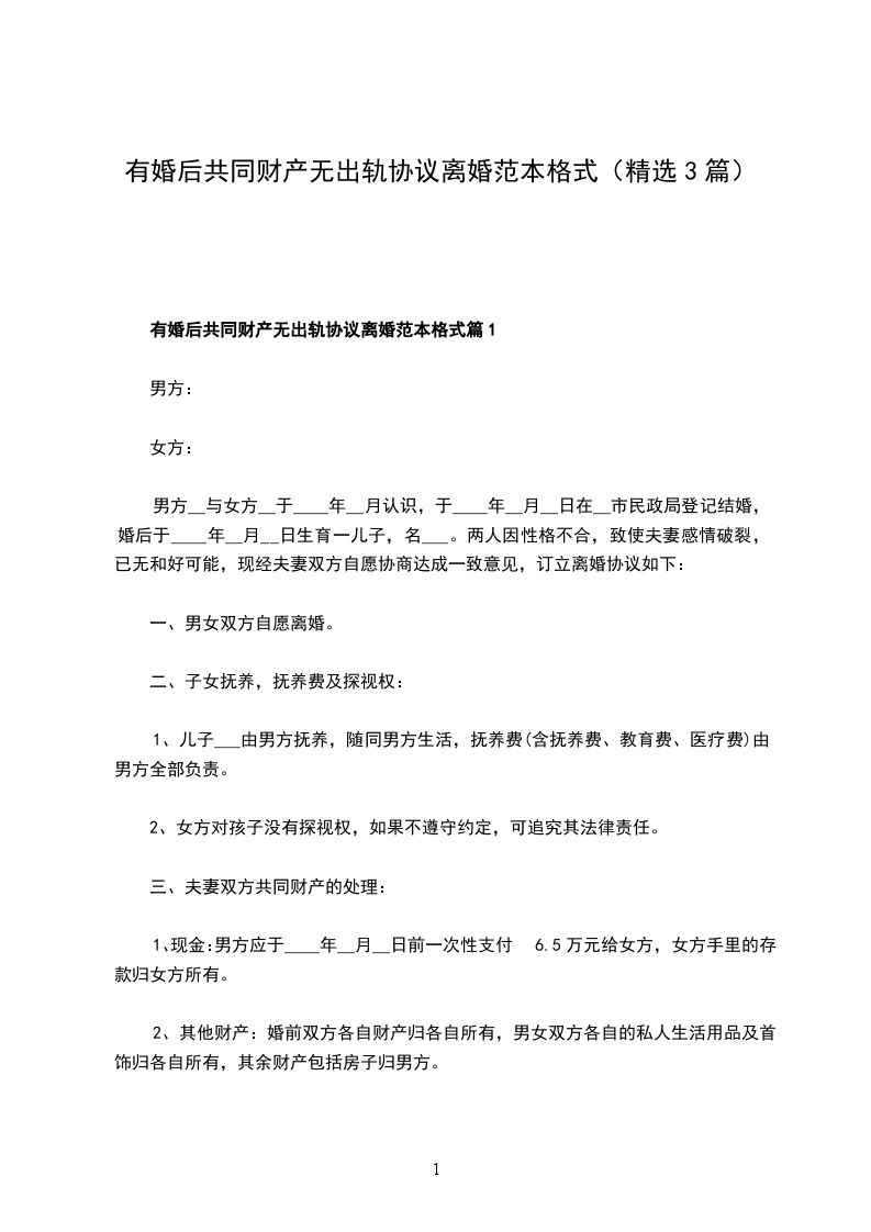 有婚后共同财产无出轨离婚协议书参考样本篇3