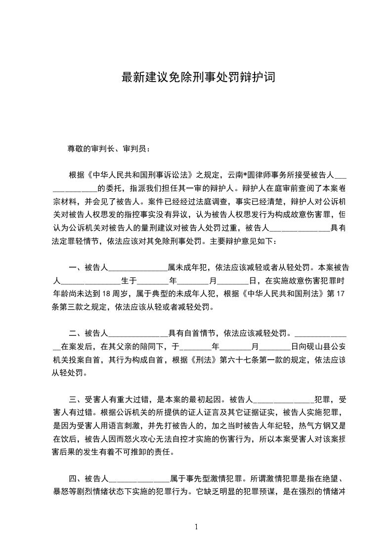 请求事项:请求对犯罪嫌疑人免于刑事处罚
