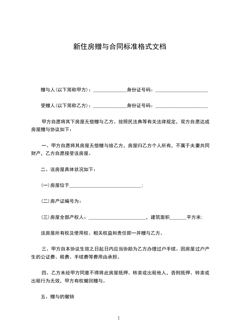甲方自愿将其下房屋无偿赠与乙方。按照民法典等有关法律规定,双方自愿达成房屋赠与协议如下: