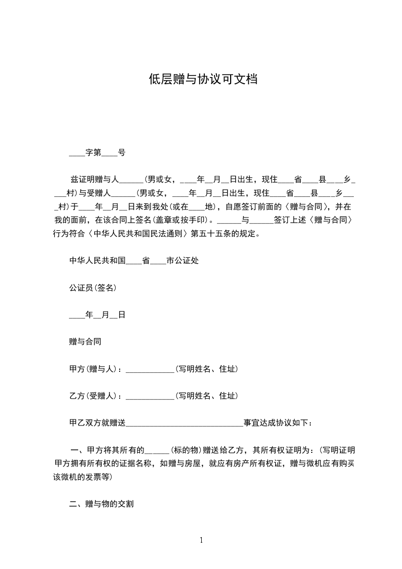 甲乙双方就赠送_____________________________事宜达成协议如下: