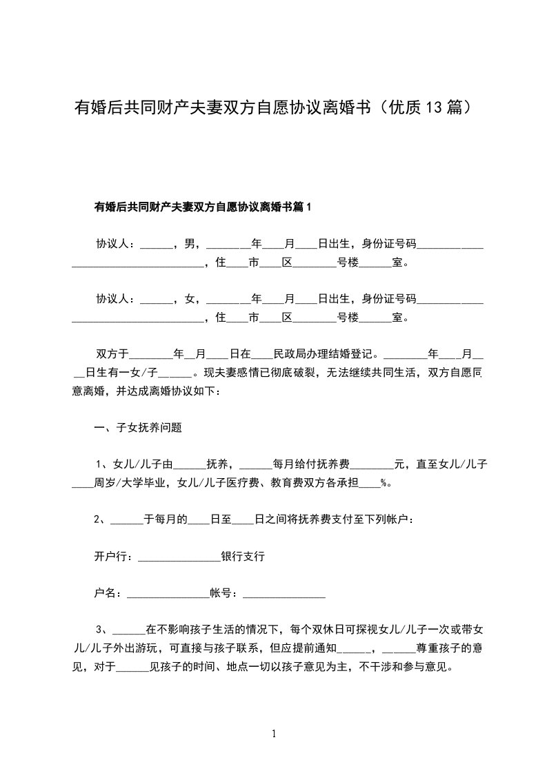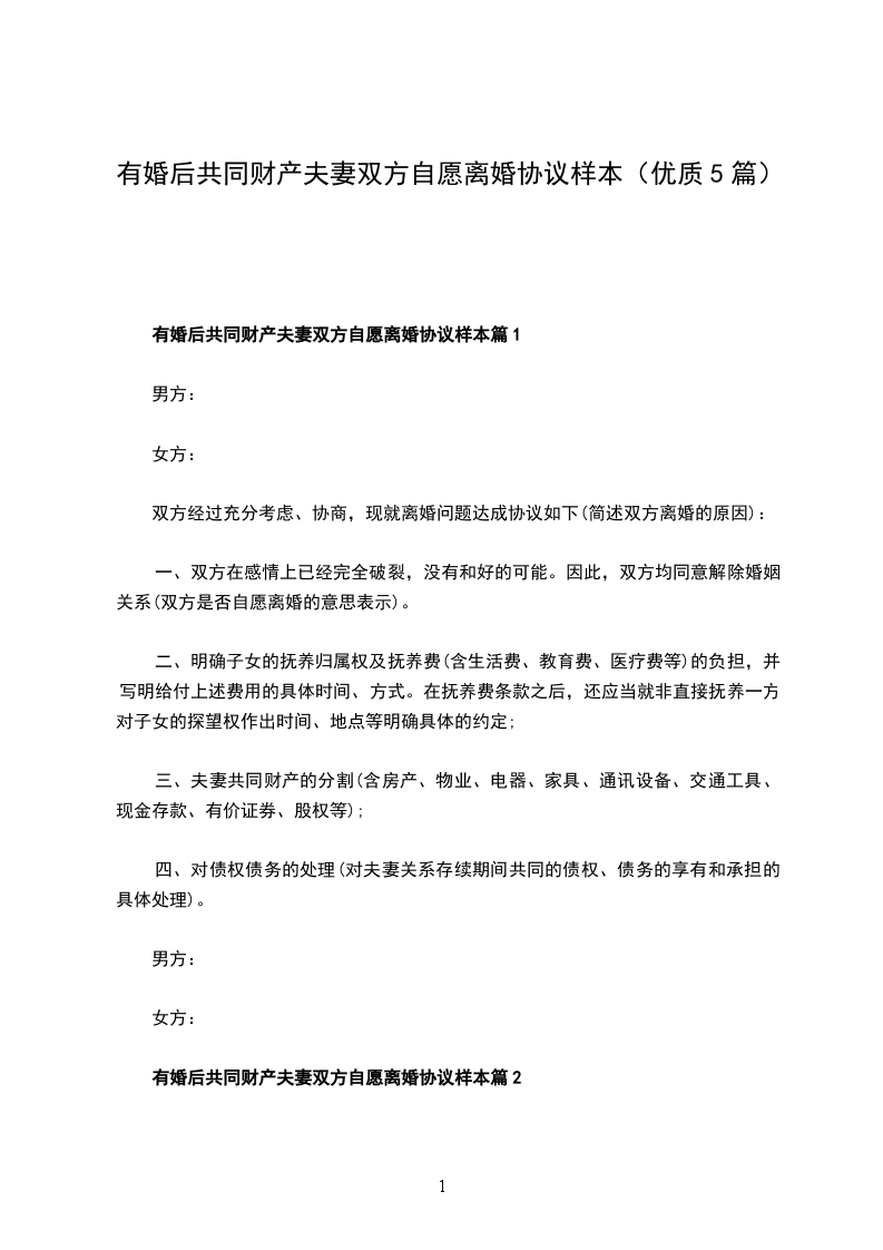 有婚后共同财产双方自愿离婚协议书参考格式篇1