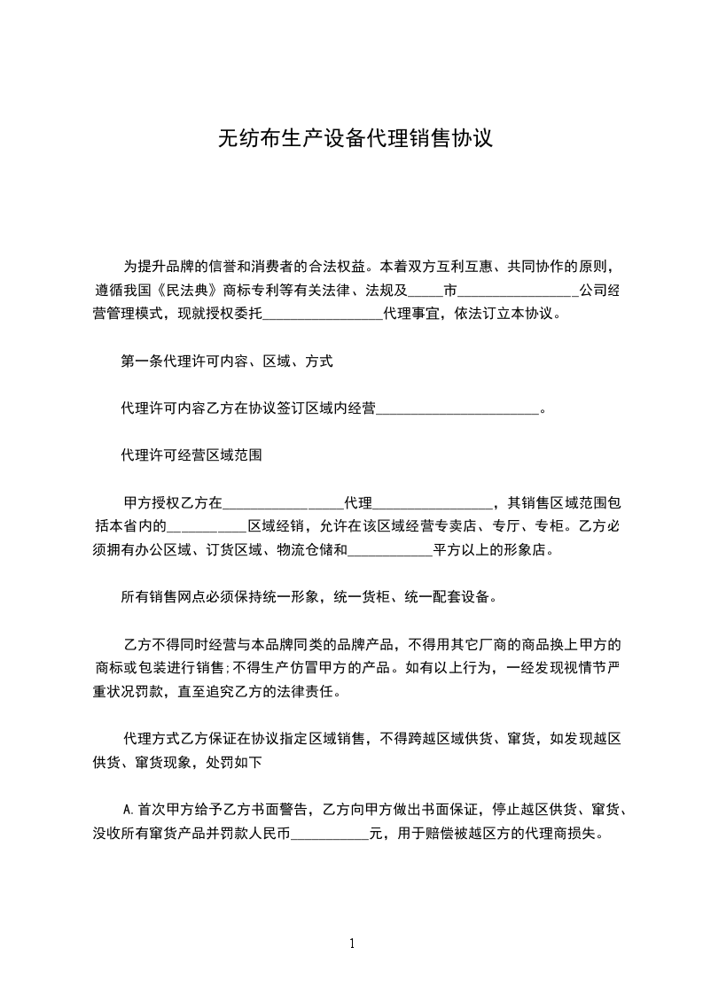 1.甲方授权乙方在规定的销售区域经销_________________品牌专卖、专厅、专柜的产品。