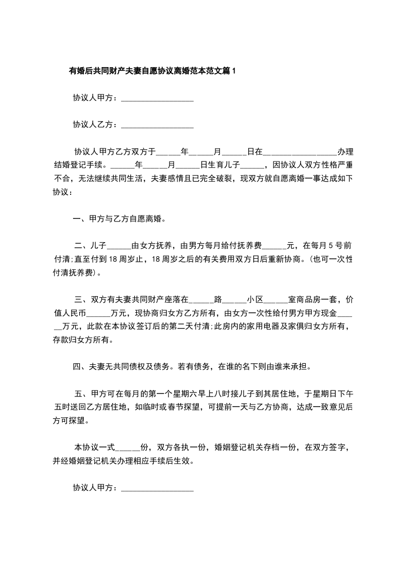 有婚后共同财产夫妻自愿协议离婚范本范文篇1