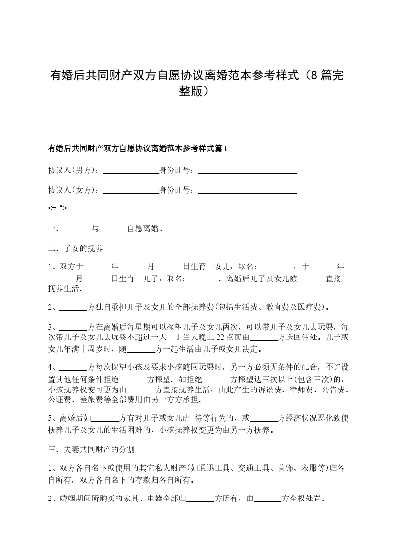 有婚后共同财产夫妻自愿协议离婚范本范文篇8