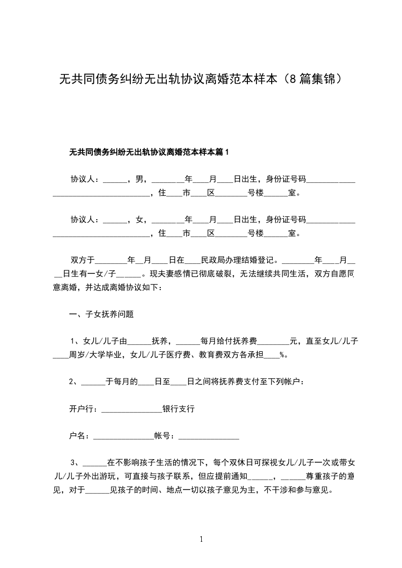 无共同债务纠纷无出轨协议离婚范本格式篇8