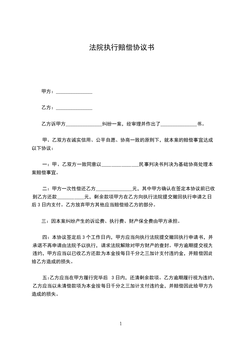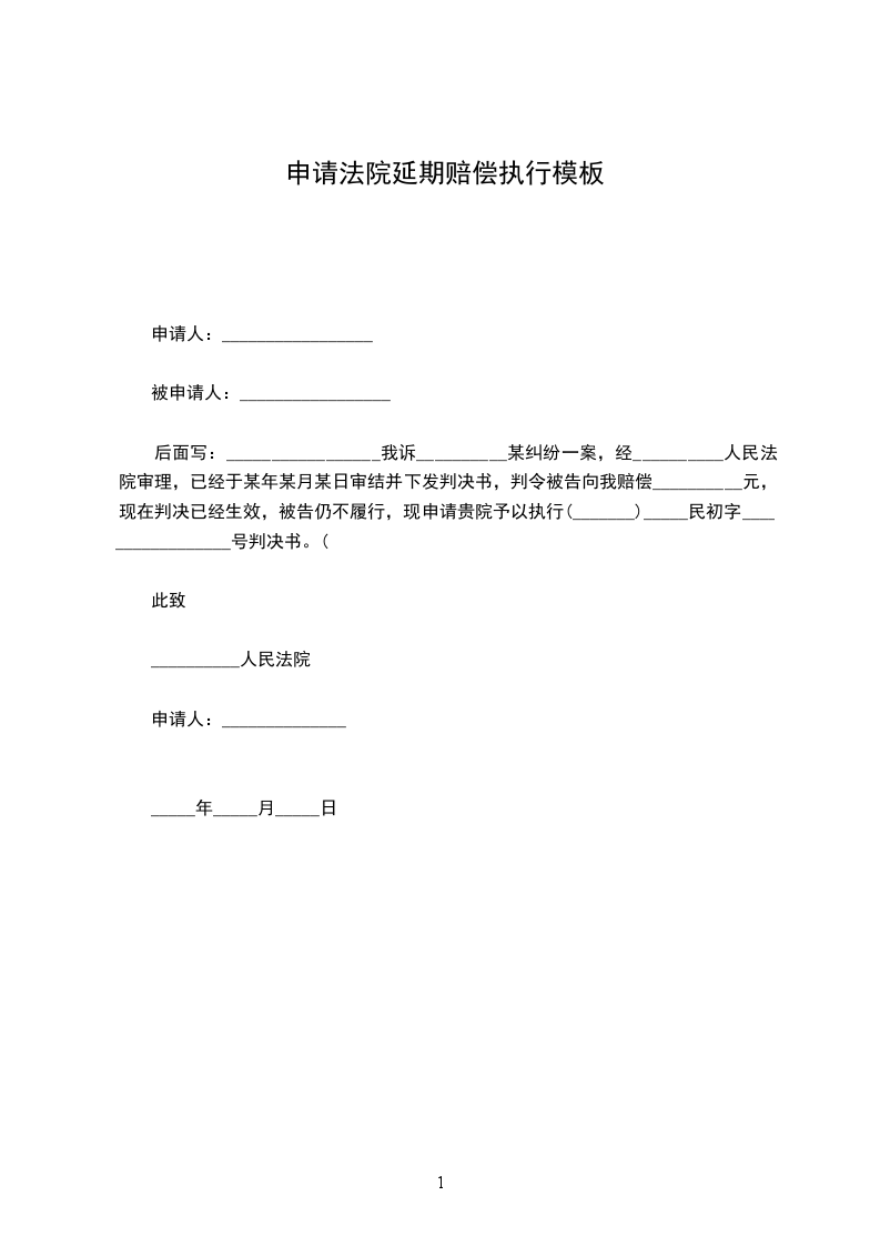后面写:_________________我诉__________某纠纷一案,经__________人民法院审理,已经于某年某月某日审结并下发判决书,判令被告向我赔偿__________元,现在判决已经生效,被告仍不履行,现申请贵院予以执行(_______)_____民初字_________________号判决书。(