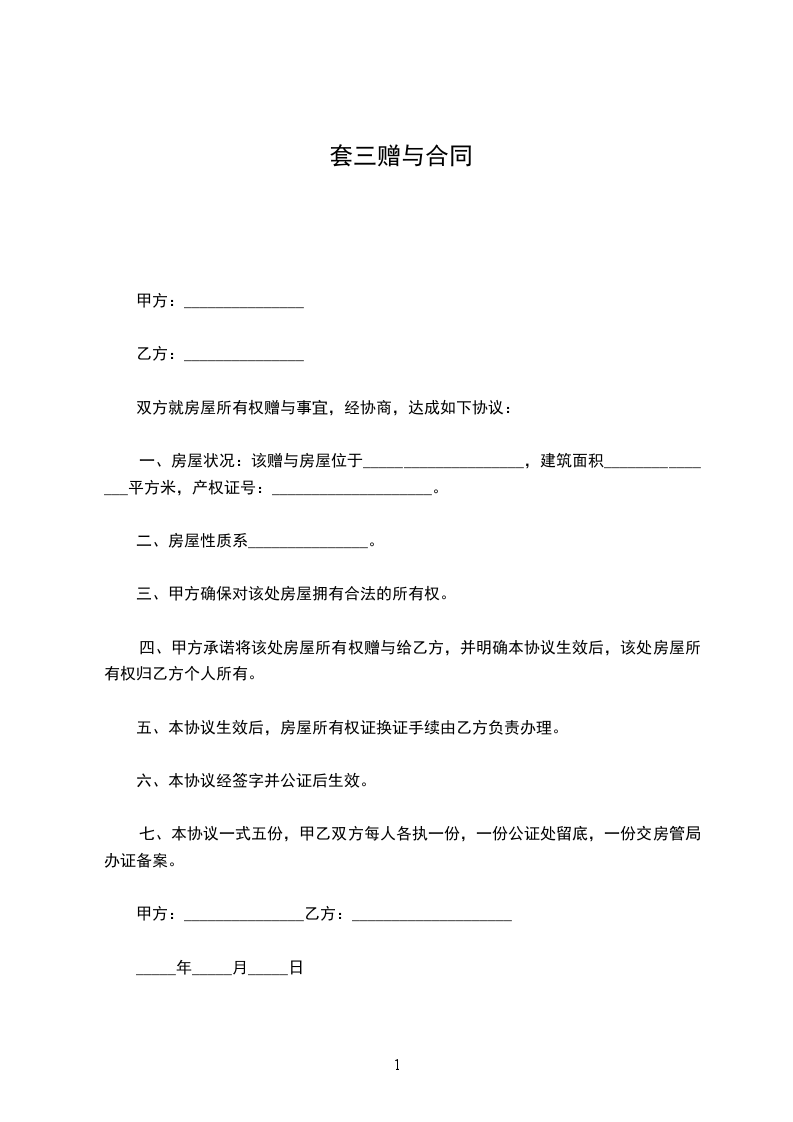 一、房屋状况:该赠与房屋位于____________________,建筑面积_______________平方米,产权证号:____________________。