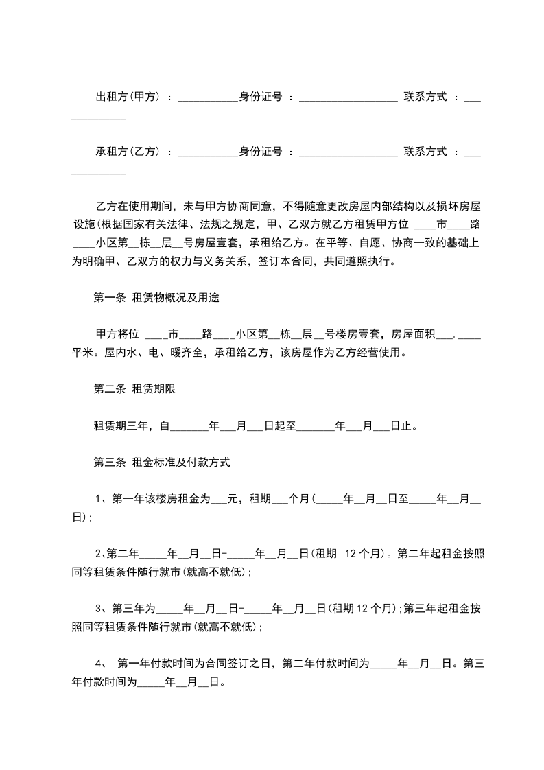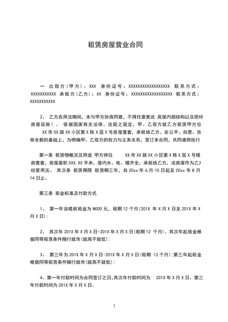 1、该营业店面租赁期限为二年,自________年____月____日起至________年____月3____日止。合同租金为_____元/月。