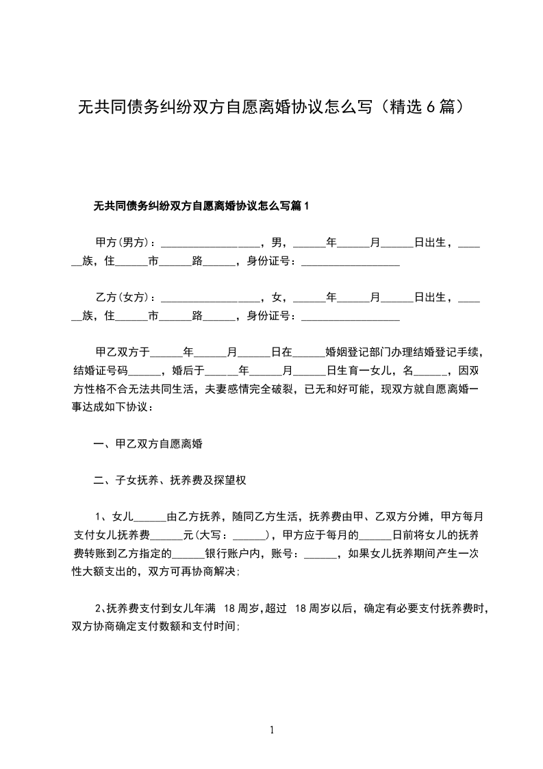 无共同债务纠纷双方自愿离婚协议怎么写篇6