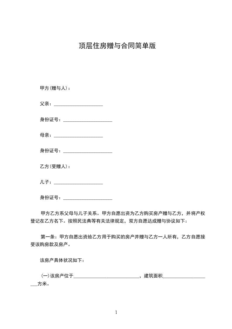 甲方乙方系父母与儿子关系。甲方自愿出资为乙方购买房产赠与乙方,并将产权登记在乙方名下。按照民法典等有关法律规定,双方自愿达成赠与协议如下:
