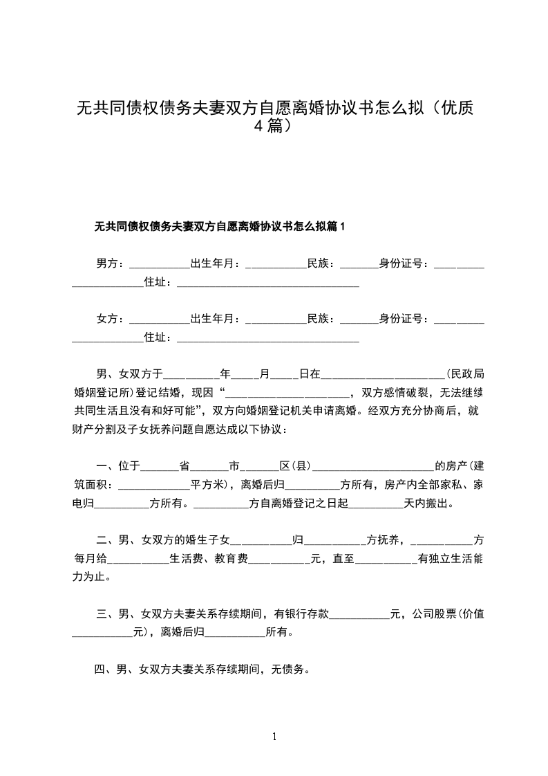 无共同债权债务夫妻双方自愿离婚协议书怎么拟篇4