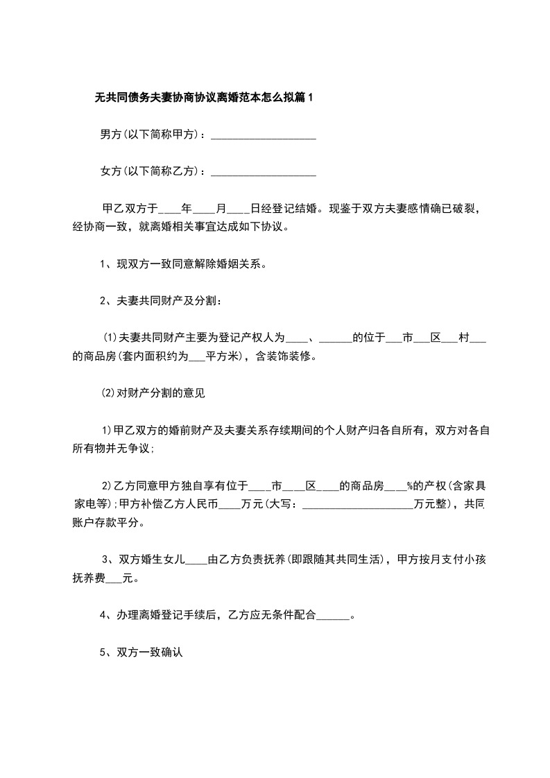 无共同债务夫妻协商协议离婚范本怎么拟篇5