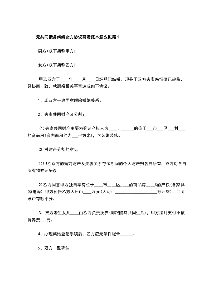 无共同债务纠纷女方协议离婚范本怎么拟篇2