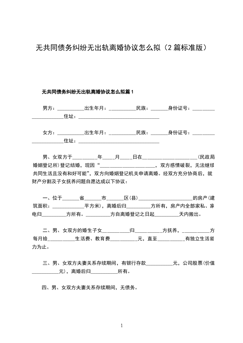 无共同债务纠纷无出轨离婚协议怎么拟篇1