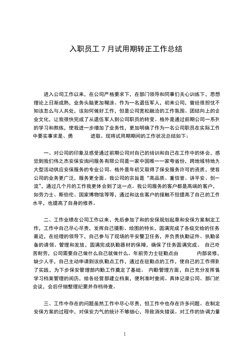 四、改进方案下步工作中要加强学习,学习老员工身上的优点,学习公司务实的工作作风。在工作中做到仔细细心,对自己所做的工作要认真核对,防止发生问题。保安的内勤管理要进一步做好归档工作,格外是保安纠察状况准时进行汇总报告。各类会议纪要整理要更加具体。 通过这几个月工作,我深深体会到有一个和谐、共进的团队是特别重要的,有一个主动向上、大气磅礴的公司和领导是员工前进的动力。公司给了我这样一个发挥的舞台,我就要珍惜这次机会,为公司的进展全力以赴。在此我提出转正申请,盼望自己能成为公司的正式员工,恳请领导予以批准。