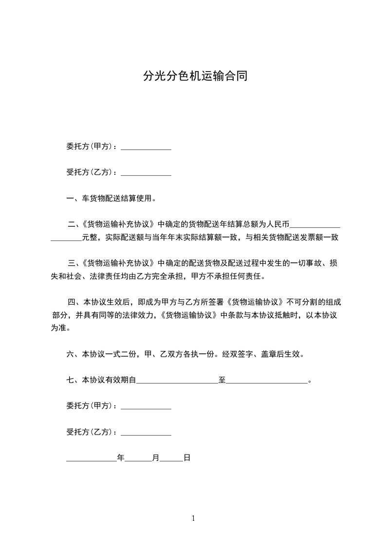二、业务办理方式:现款现货,付款后提货。运输费由甲乙双方各承担______________%(只限公路长途)。乙方单次提货量达____箱以上,由甲方承担全部运费。