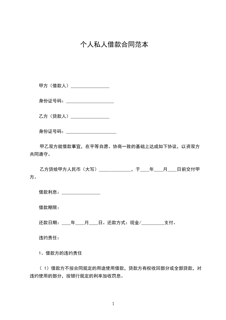 一、乙方贷给甲方人民币(大写)_____________________,于_____________________前交付甲方。