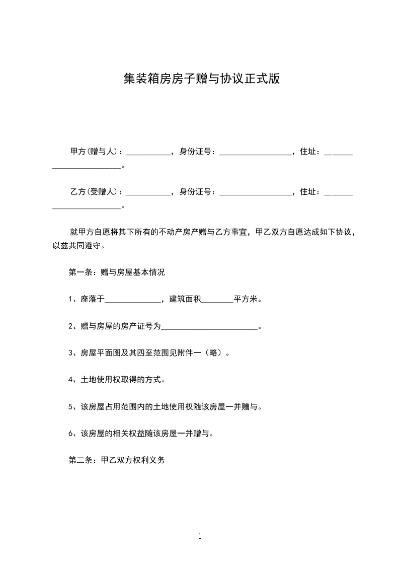 第一条:甲方自愿将位于___________________________________的一套房屋赠与乙方所有,乙方自愿接受该房产。