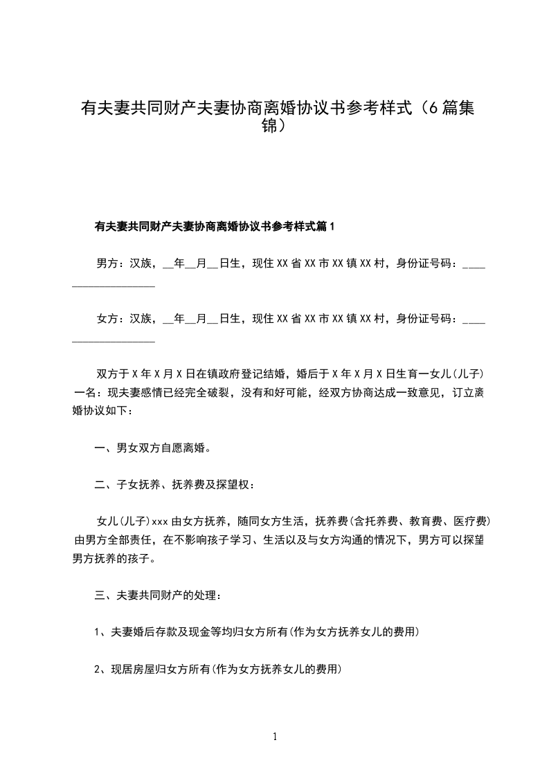 有夫妻共同财产夫妻协商离婚协议书参考样式篇6
