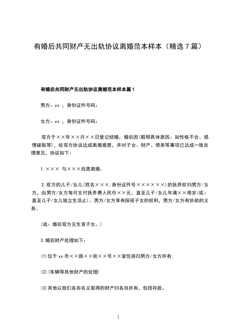 有婚后共同财产无出轨离婚协议书参考样例篇7