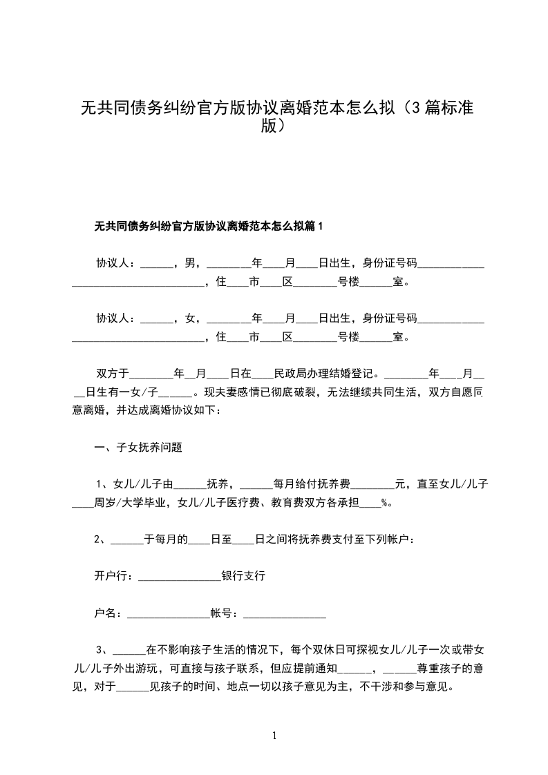 无共同债务纠纷官方版离婚协议书怎么拟篇3