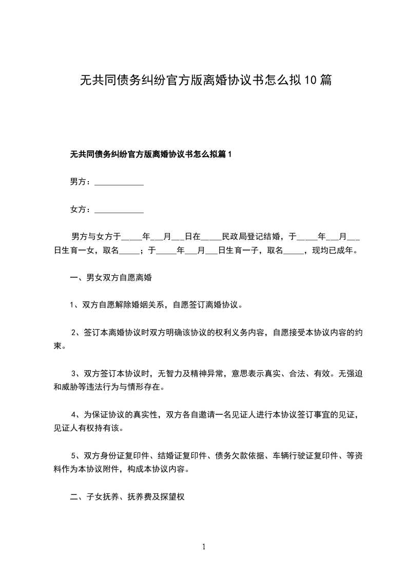 无共同债务纠纷官方版离婚协议书怎么拟篇2