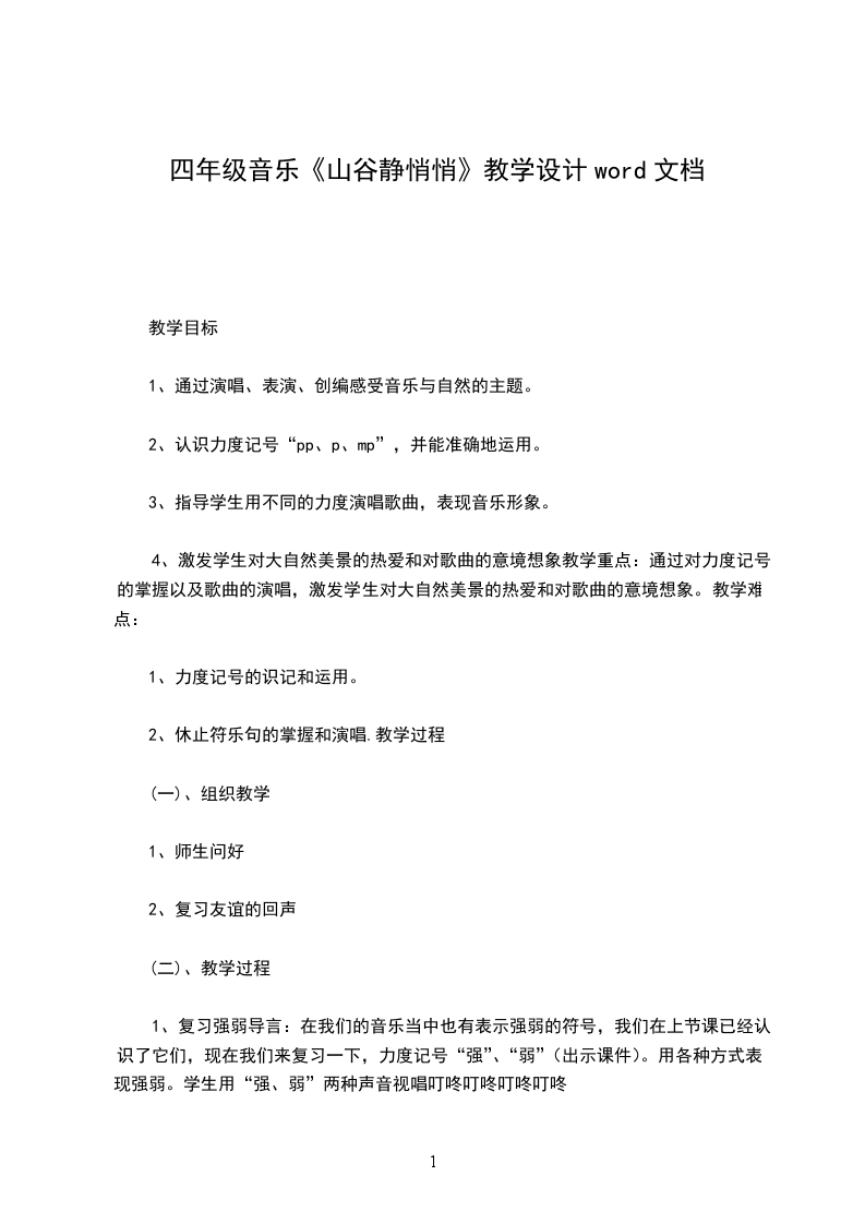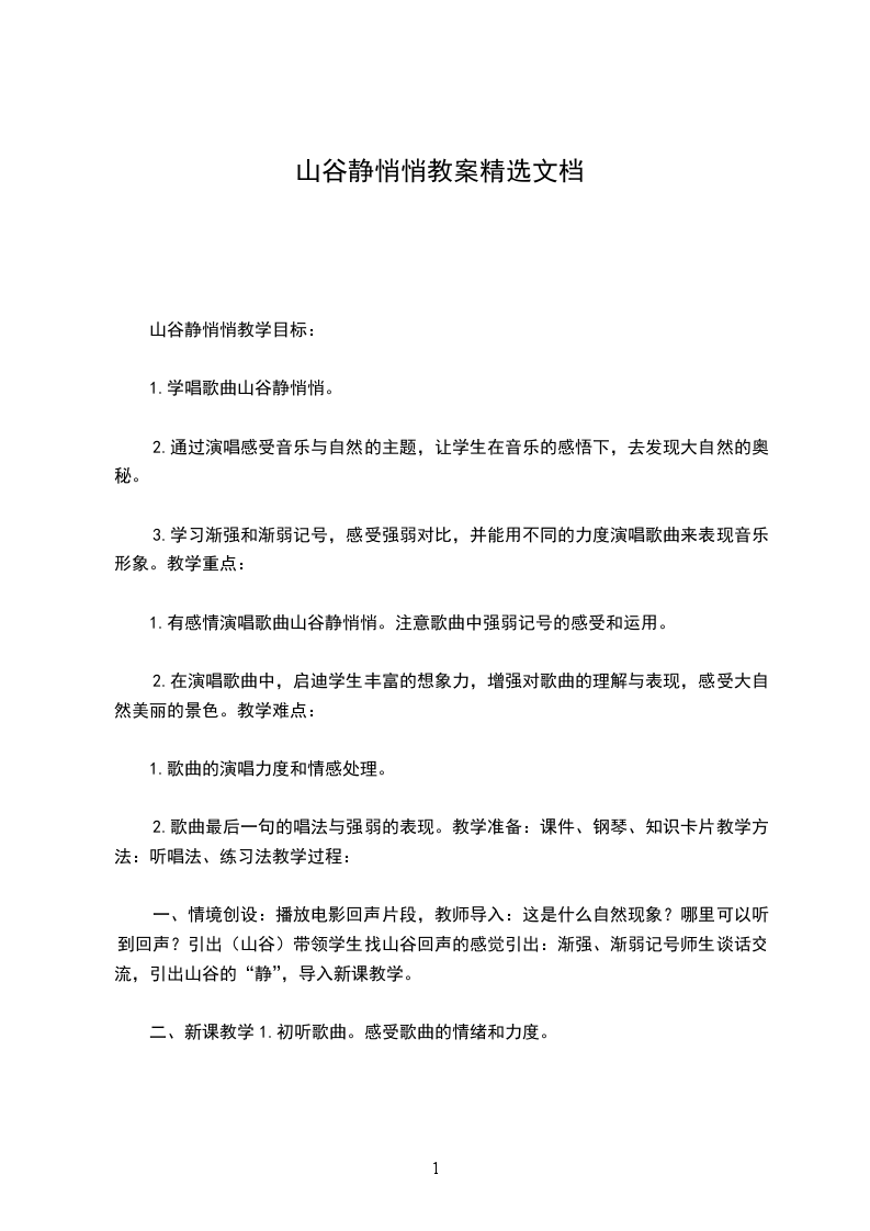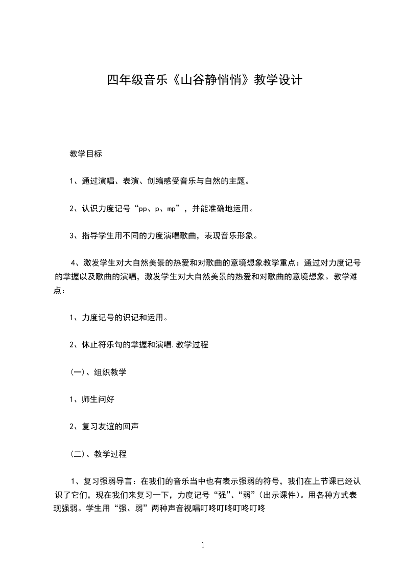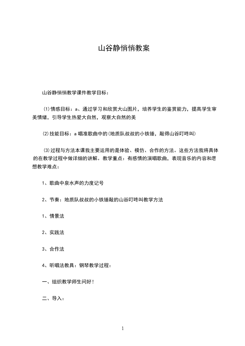 三、歌曲教学:1导入:山谷里的回声如此有趣,山歌里的歌声更是美妙,这就是我们今天要学的歌曲山谷静悄悄你听。