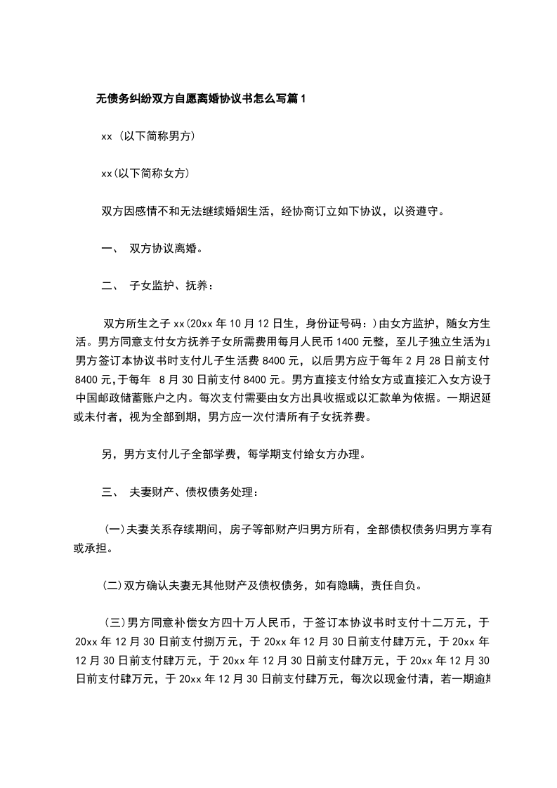 无债务纠纷双方自愿离婚协议书怎么写篇2