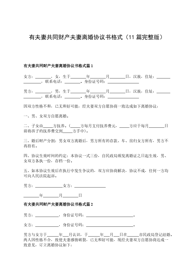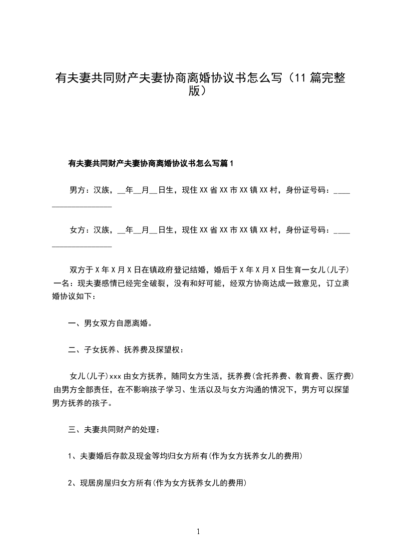有夫妻共同财产夫妻协商离婚协议书怎么写篇11