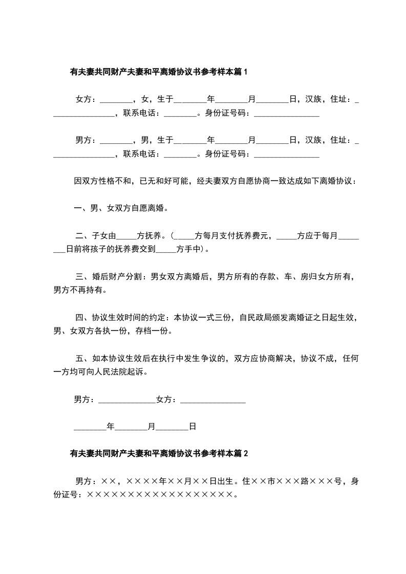 有夫妻共同财产夫妻协商离婚协议书怎么写篇2