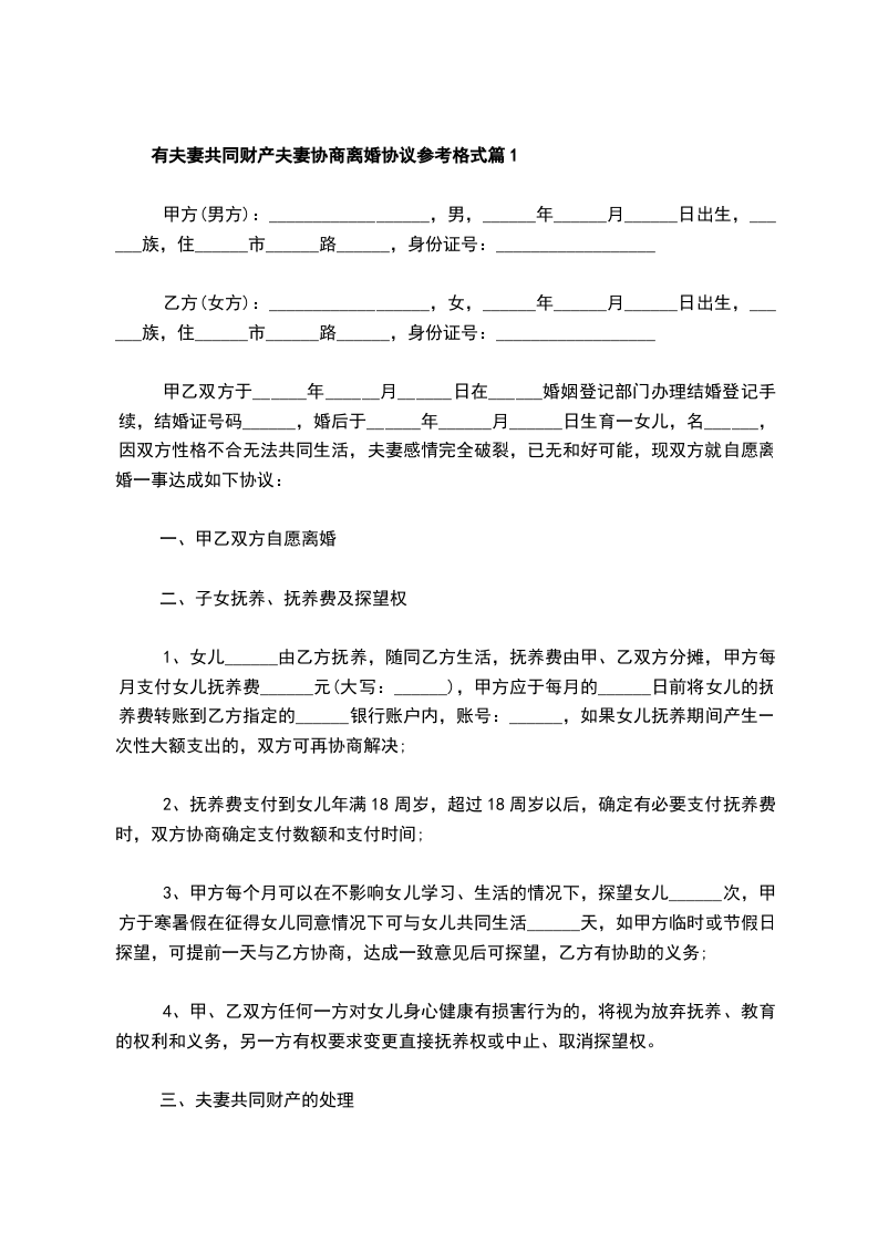 有夫妻共同财产夫妻协商离婚协议书怎么写篇3