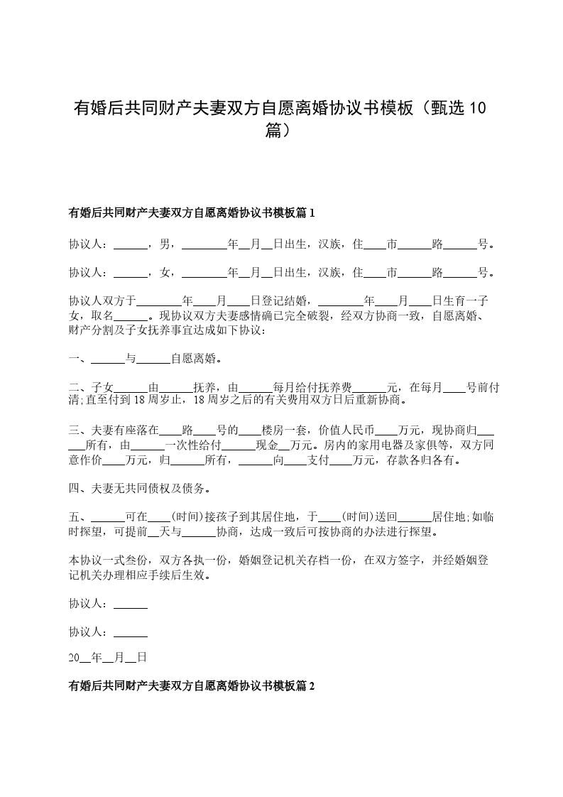 有婚后共同财产双方自愿离婚协议书格式篇10