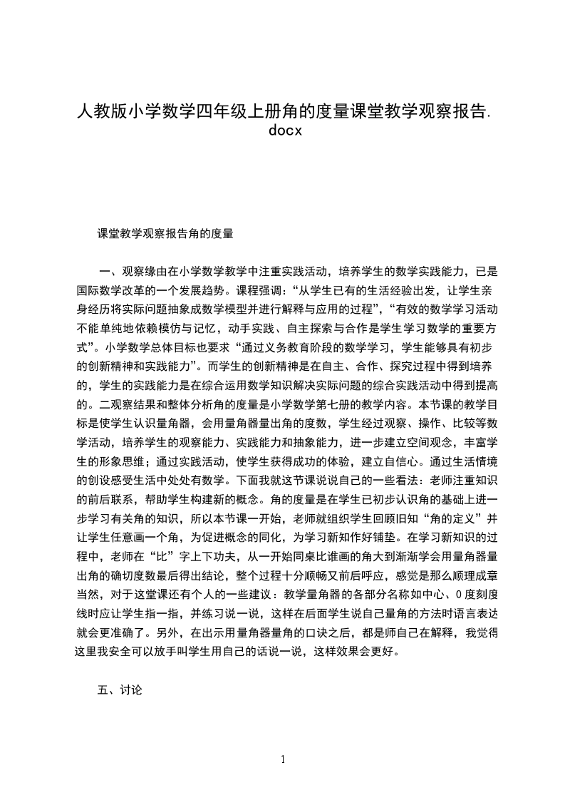 (1)白板上画两个角(一个用小量角器画,一个用大量角器画):请学生说一说两个角有什么不同。估计一下,谁大谁小。师:我们一起来验证一下,请看到书本P38页例1。用量角器在书上具体量一量,并标出度数。