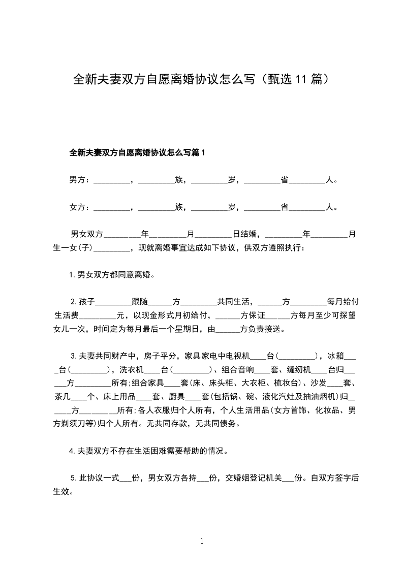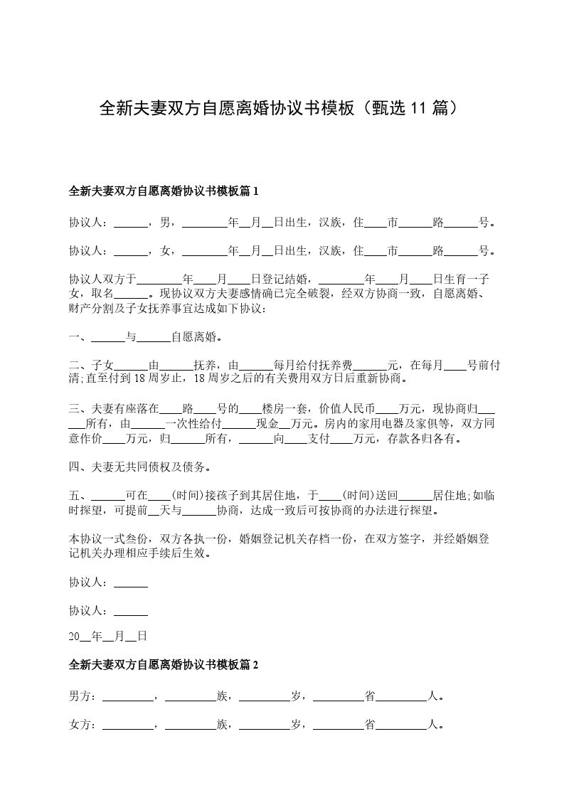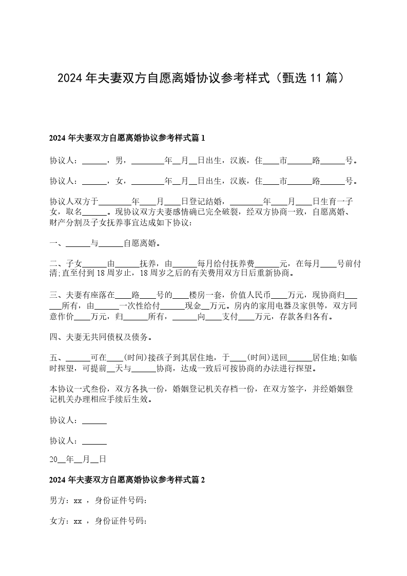 2024年夫妻双方自愿离婚协议参考样式篇11