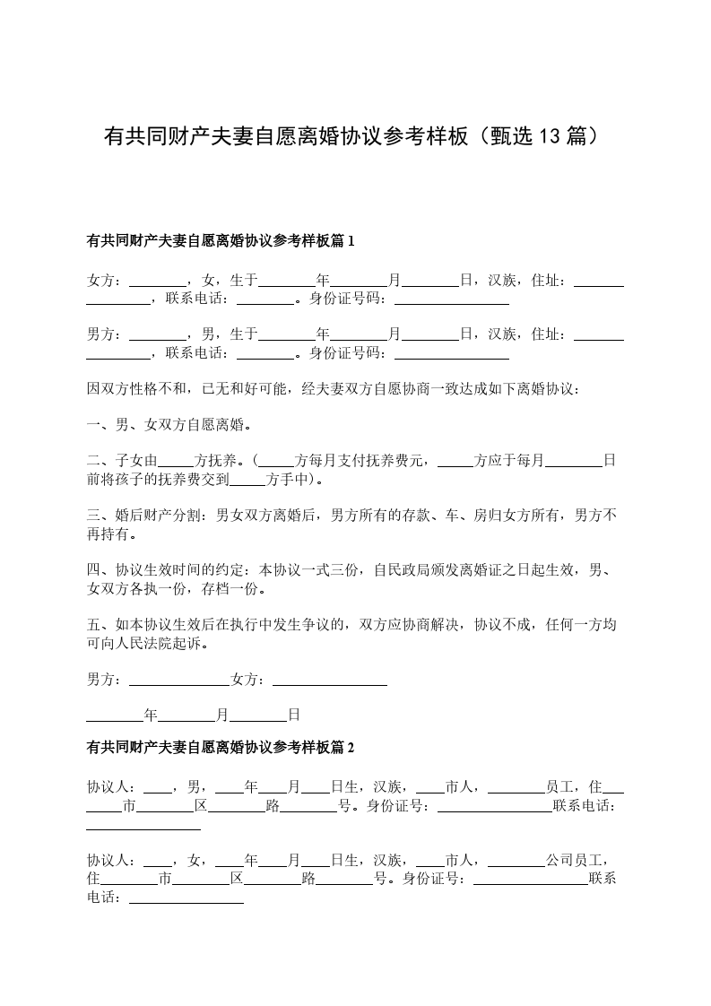 有共同财产夫妻自愿离婚协议参考样板篇13