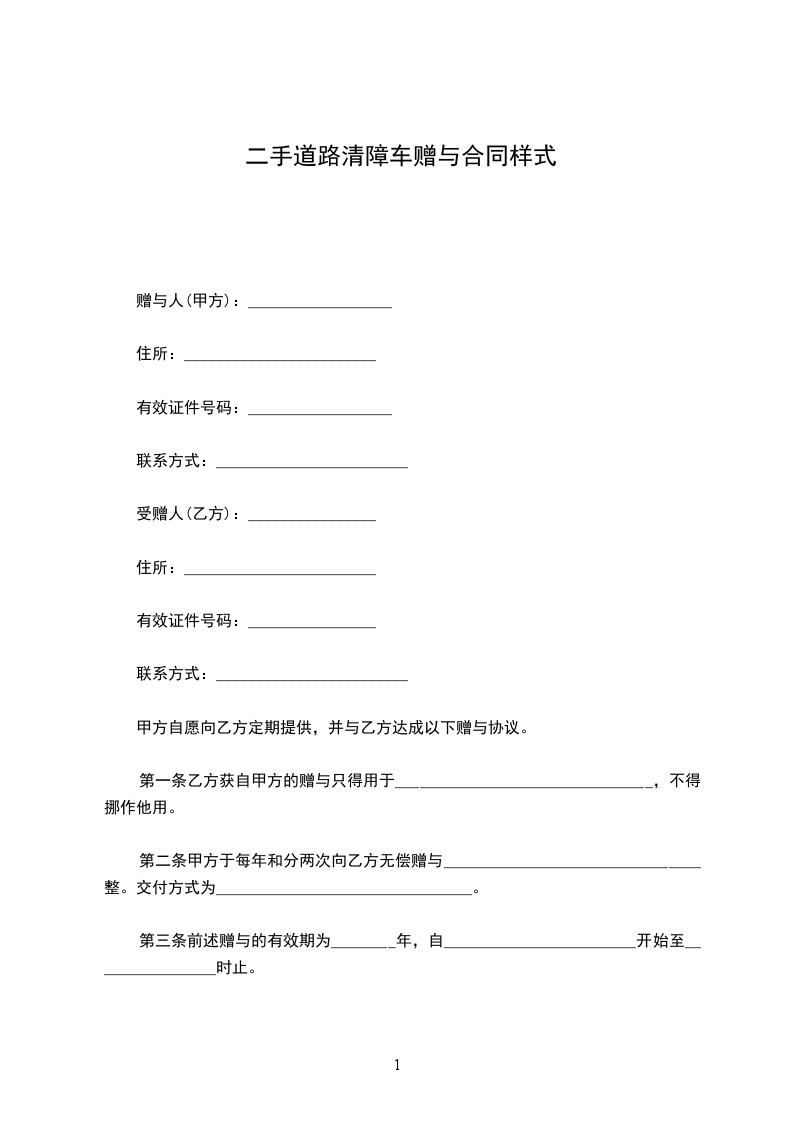 第二条甲方于每年和分两次向乙方无偿赠与________________________________整。交付方式为________________________________。