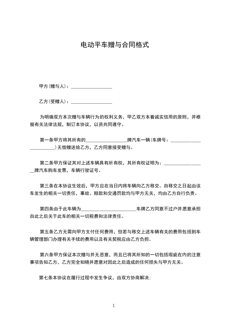 第一条甲方将其所有的__________________牌汽车一辆(车牌号:________________________)无偿赠送给乙方,乙方同意接受赠与。