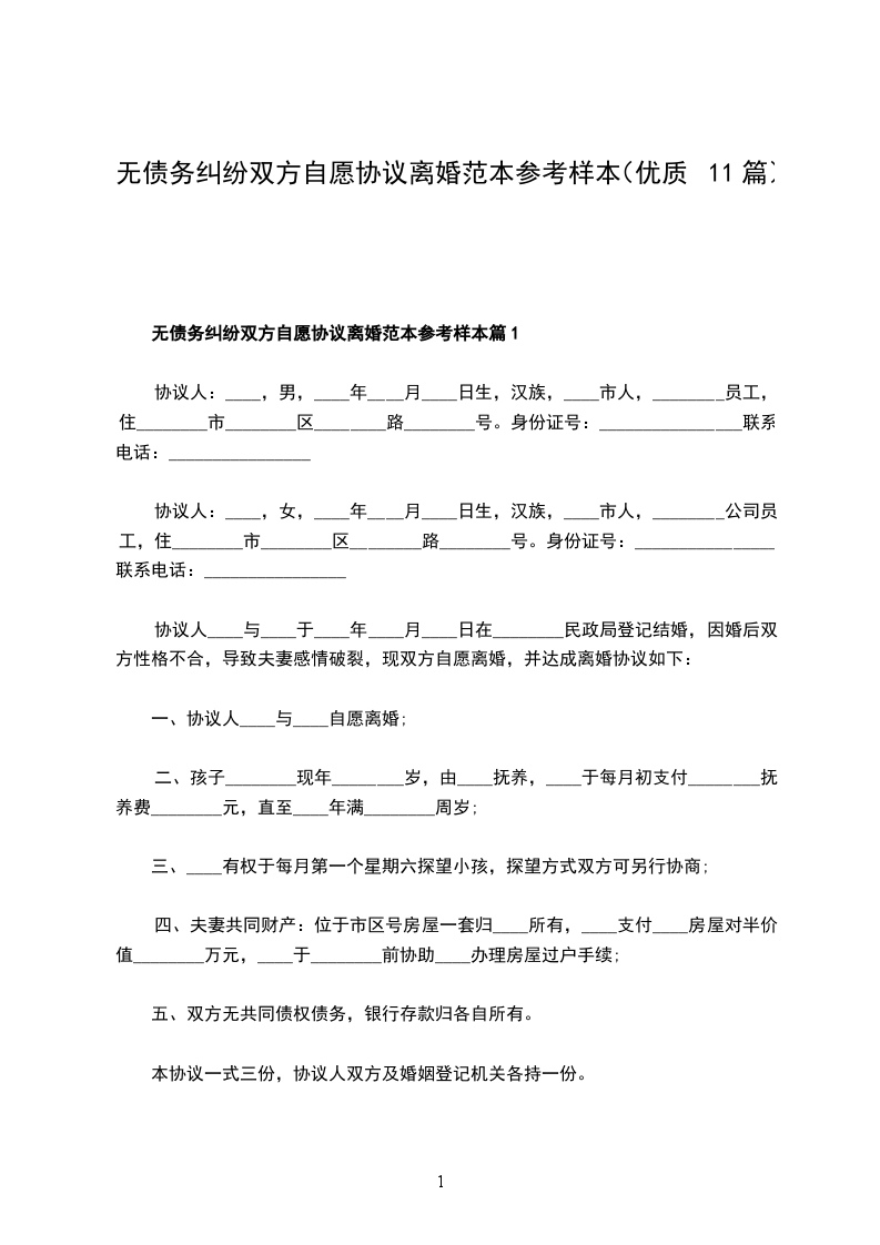 无债务纠纷双方自愿离婚协议参考样例篇11