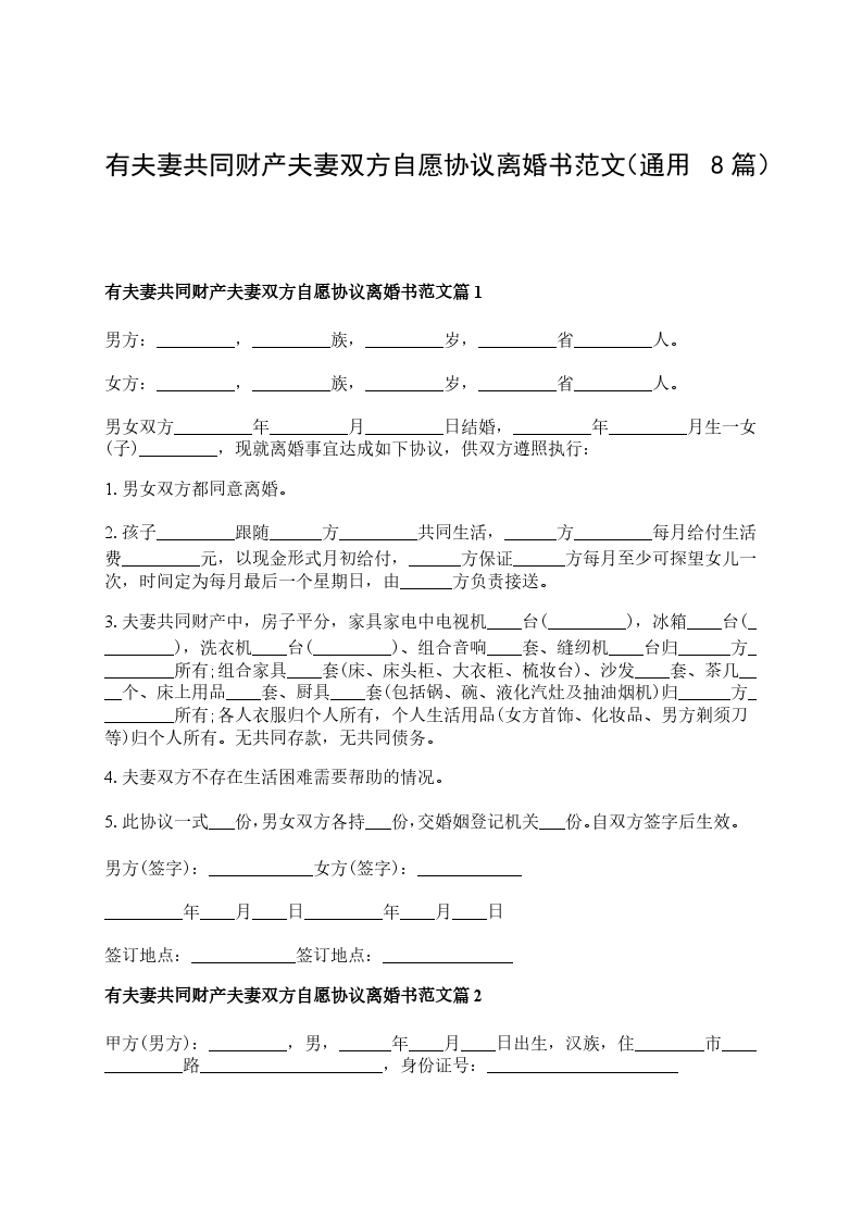 有夫妻共同财产夫妻双方自愿离婚协议参考样例篇8