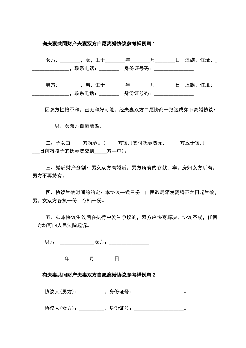 有夫妻共同财产夫妻双方自愿离婚协议参考样例篇2