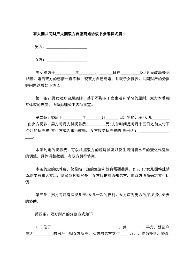 有夫妻共同财产夫妻双方自愿离婚协议参考样例篇1