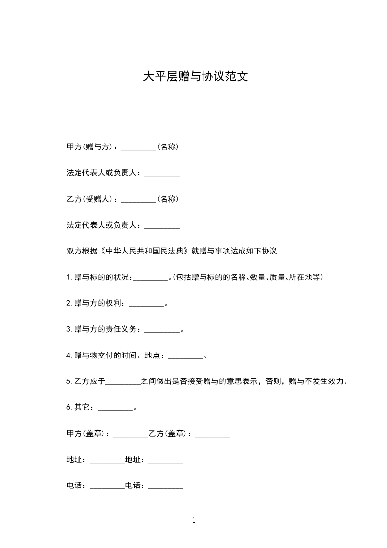甲方乙方系父亲与儿子关系。甲方自愿将自己合法拥有的一套房屋无偿赠与乙方,乙方自愿接受房屋全部产权。按照民法典等有关法律规定,双方自愿达成赠与协议如下: