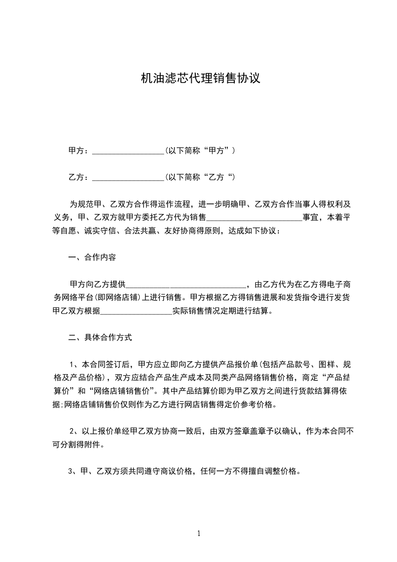为规范甲、乙双方合作得运作流程,进一步明确甲、乙双方合作当事人得权利及义务,甲、乙双方就甲方委托乙方代为销售________________________事宜,本着平等自愿、诚实守信、合法共赢、友好协商得原则,达成如下协议: