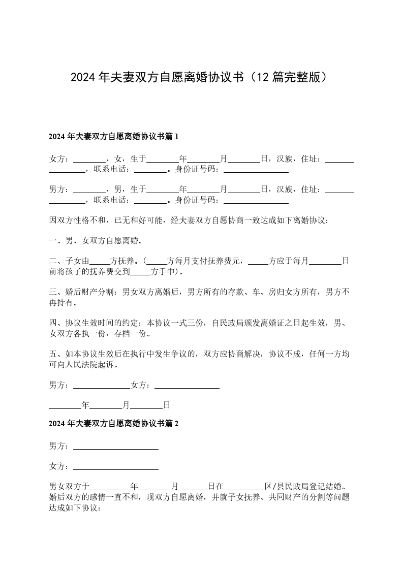 乙方(女方):__________________,女,______年______月______日出生,______族,住__________________,身份证号:__________________