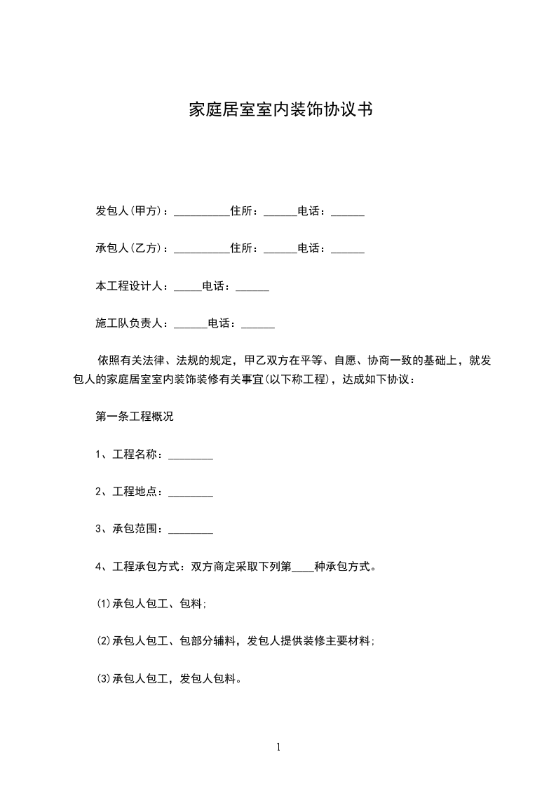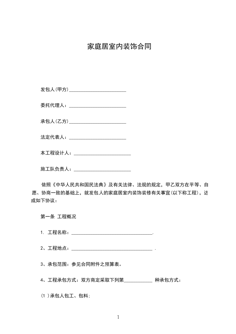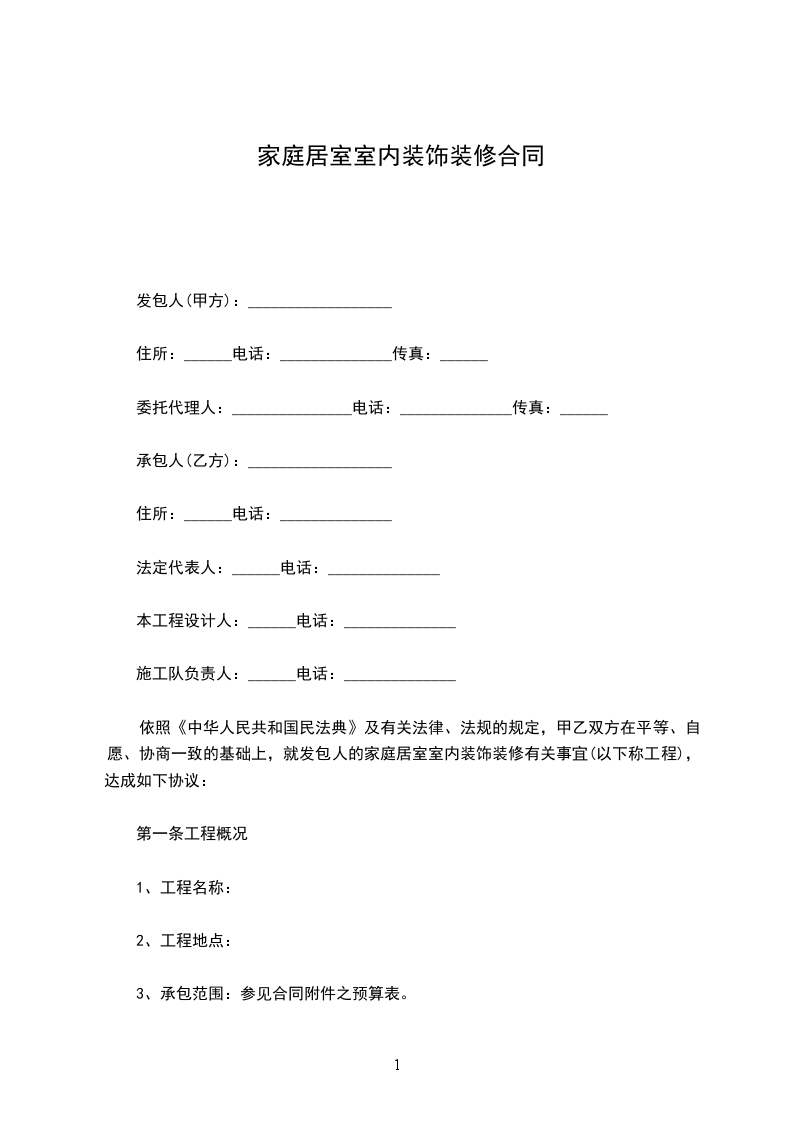 2024年家庭居室内装饰装修合同怎么起草篇1