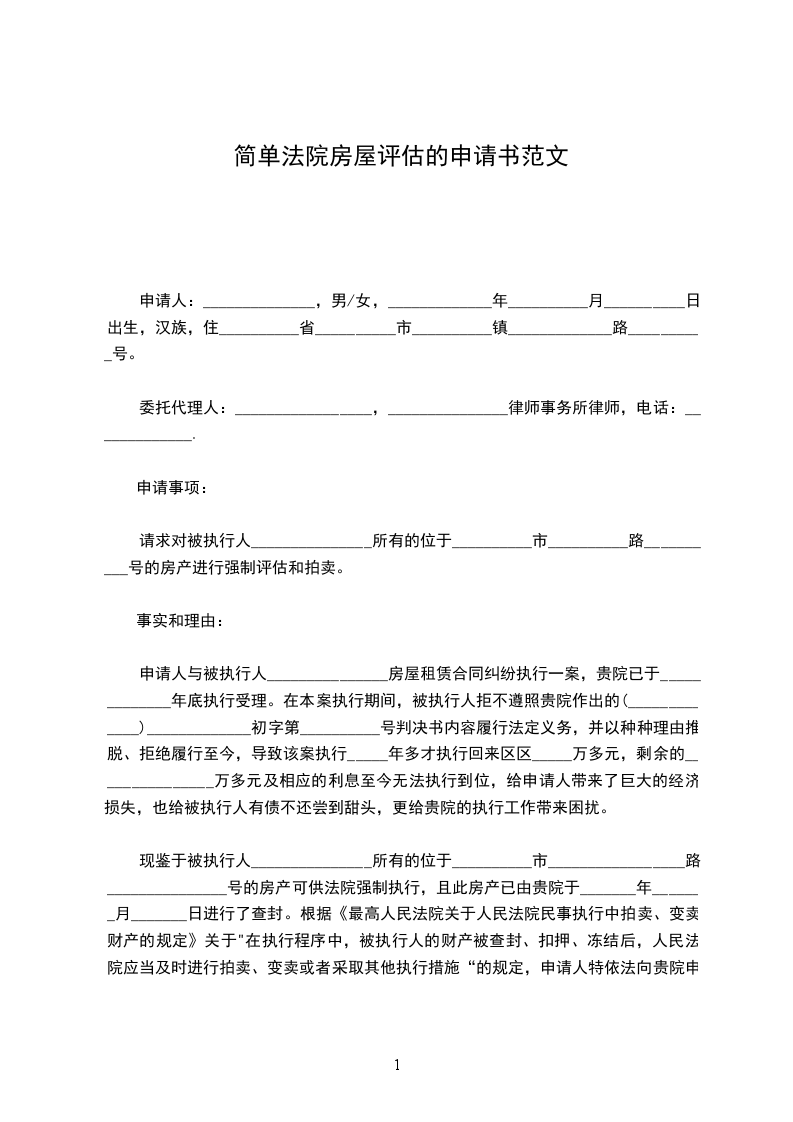 请求对被执行人_______________所有的位于__________市__________路__________号的房产进行强制评估和拍卖。
