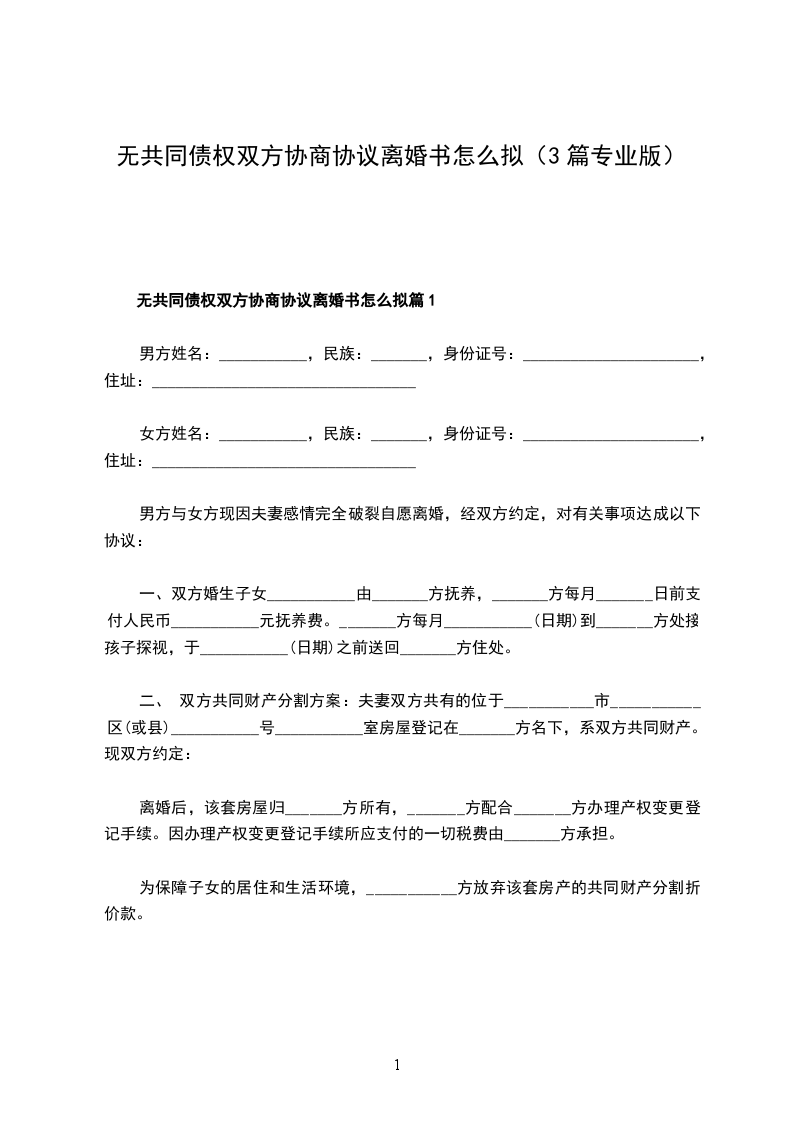 无共同的债权双方协商协议离婚范本怎么拟篇3