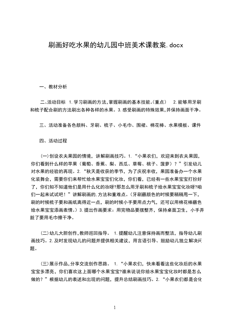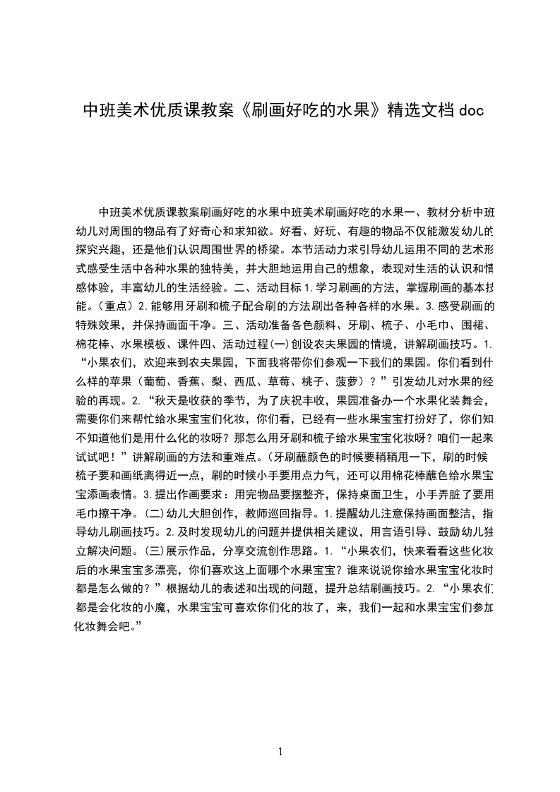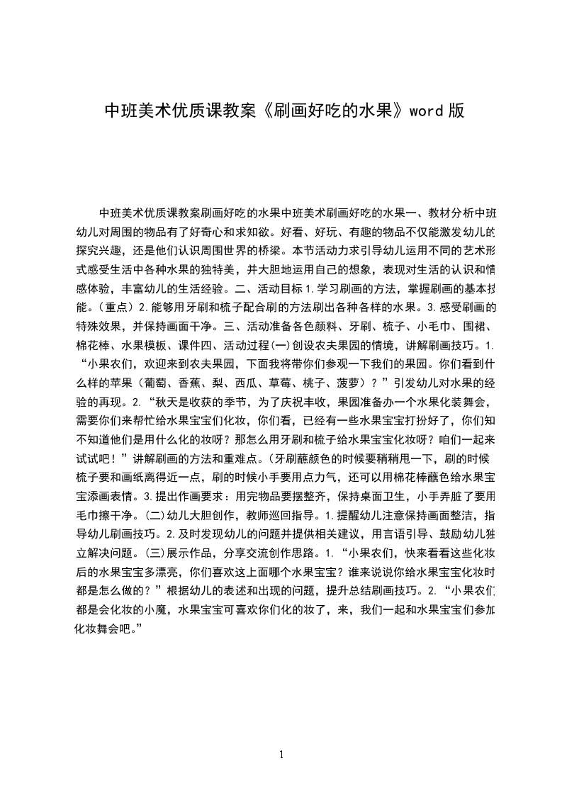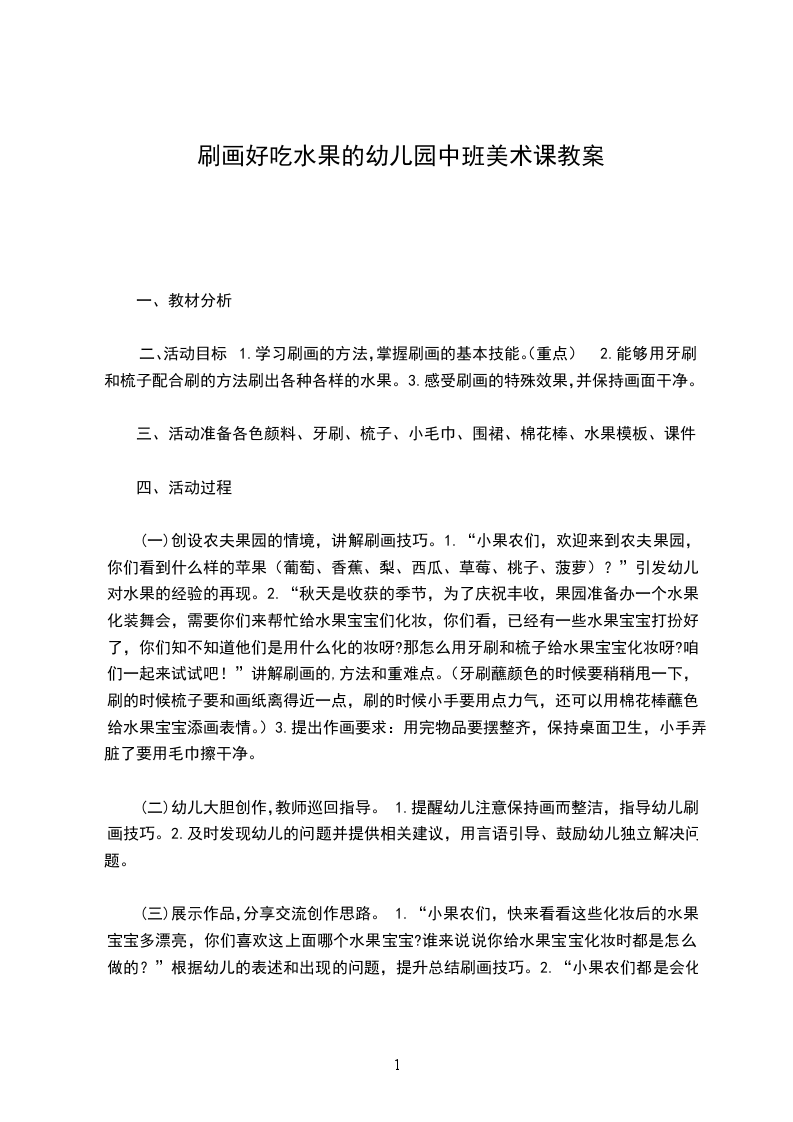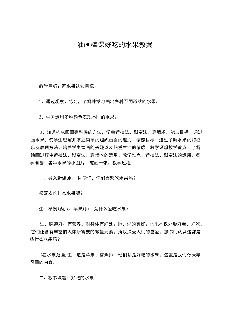 (看水果范画)生:这是苹果、香蕉师:他们都是好吃的水果,这就是我们今天学习画的内容。