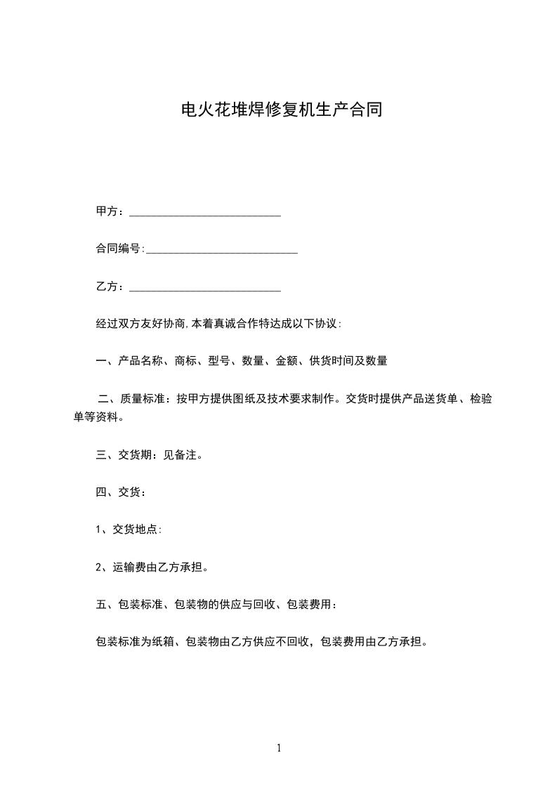 电火花堆焊修复机代理销售协议